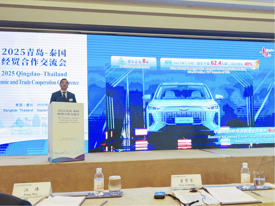 From September 22 to 24, the 2025 Qingdao–Thailand Economic and Trade Cooperation Forum was successfully held. IBI’s CNAUTO platform was invited to attend, together with Haier Group, Shandong Port Qingdao Port Group, Sailun Group, and Shandong Energy Qingdao Hongjin International Co., Ltd., to jointly explore pathways and mechanisms for deepening Qingdao–Thailand economic and trade cooperation. The forum was led by Zeng Zanrong, Member of the Standing Committee of the CPC Shandong Provincial Committee and Secretary of the CPC Qingdao Municipal Committee. Government and business representatives gathered in Bangkok, Thailand, to build consensus on industrial collaboration and overseas expansion.